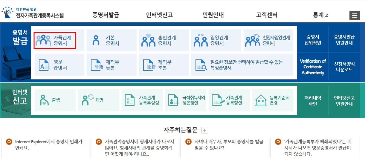 가족관계증명서 인터넷 발급 방법 확인해보세요.