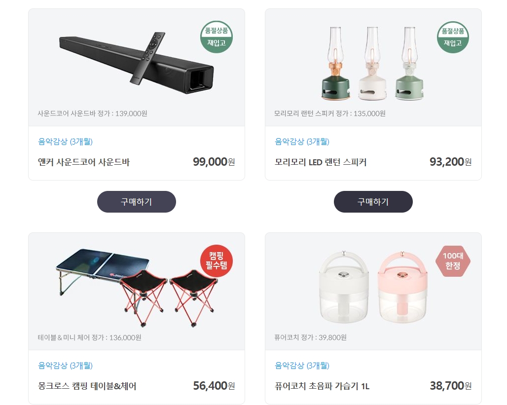 만약 구매하고 싶은 전자 제품이 스폐셜 이용권에 구성하고 있다면 구매하는 것을 고민해도 좋지 않을까 판단됩니다. 제품과 함께 3개월 음악 감상 이용권을 제공하기 때문입니다.