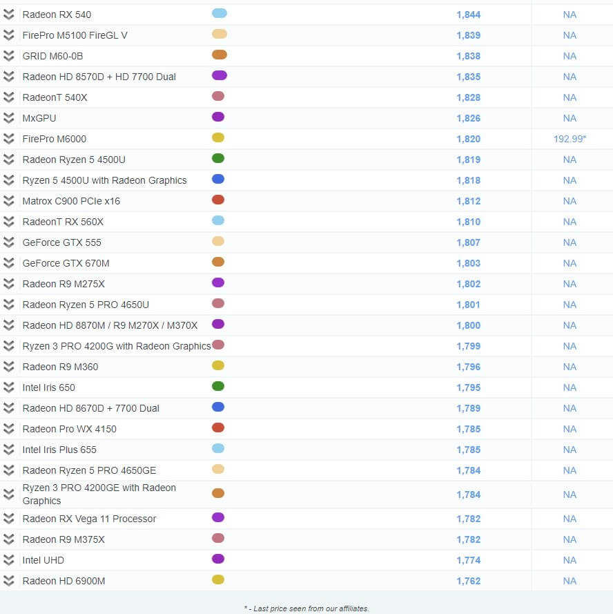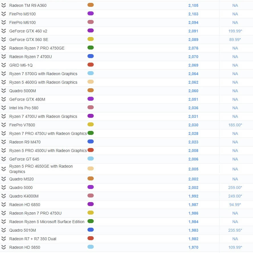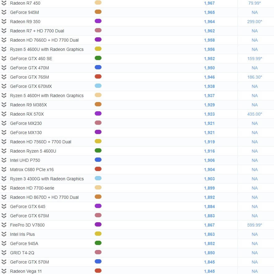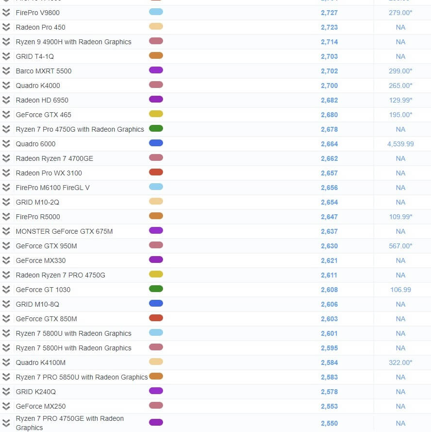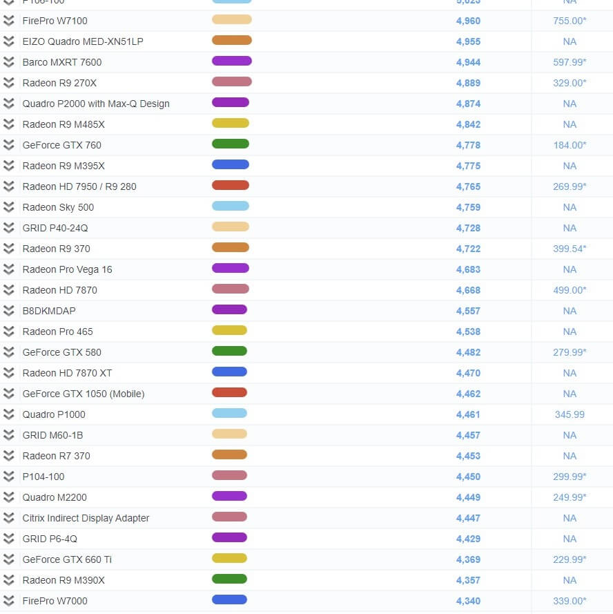 | 39 | GeForce GTX 1050 (Mobile) | 4,462 | NA |