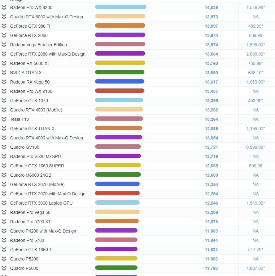 | 101 | GeForce RTX 2080 (Mobile) | 15,107 | NA |