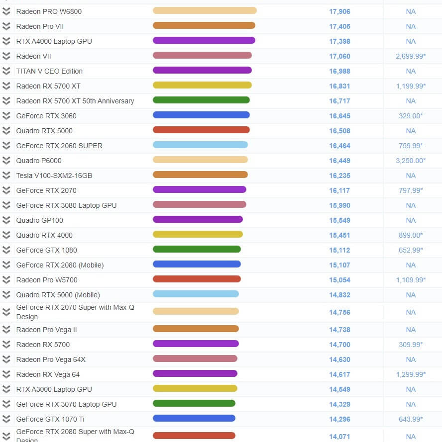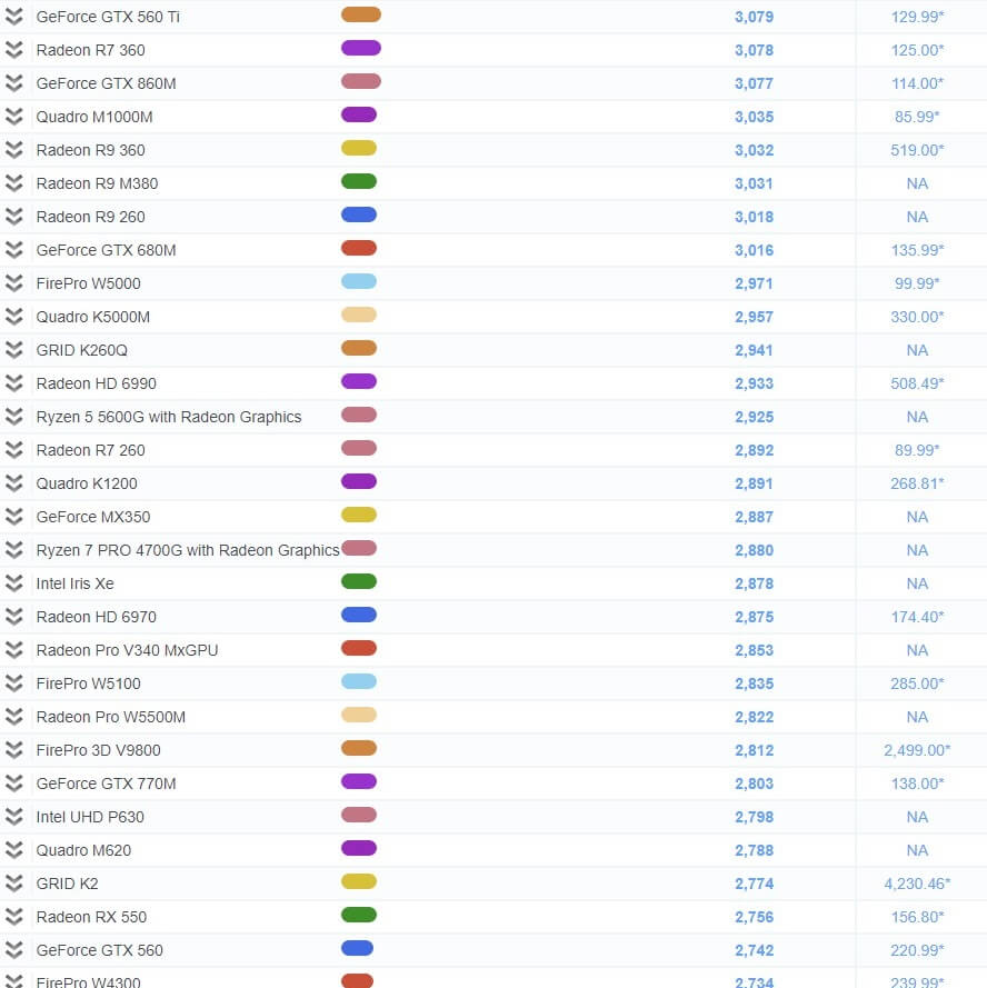 | 91 | GeForce RTX 3060 Ti | 19,779 | 509.99* |