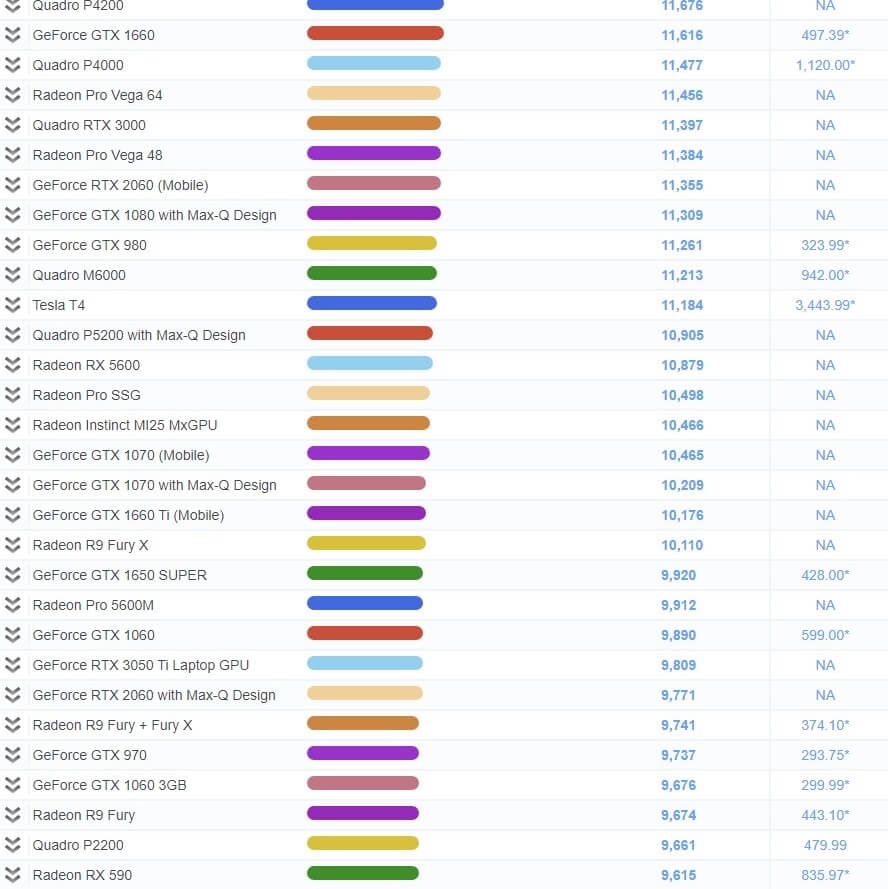 | 17 | GeForce GTX 1650 Ti | 7,467 | NA |