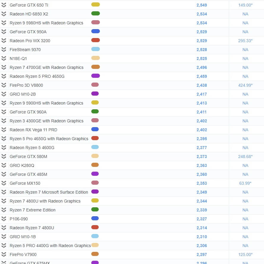 | 77 | GeForce MX250 | 2,553 | NA |