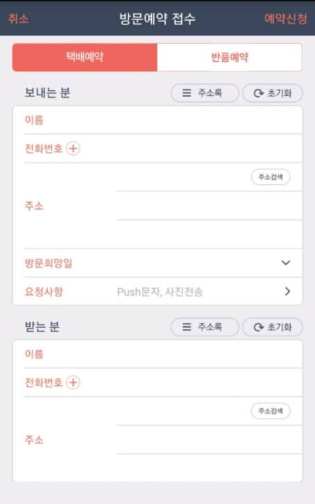 본격적으로 택배 예약 방법을 살펴보겠습니다.