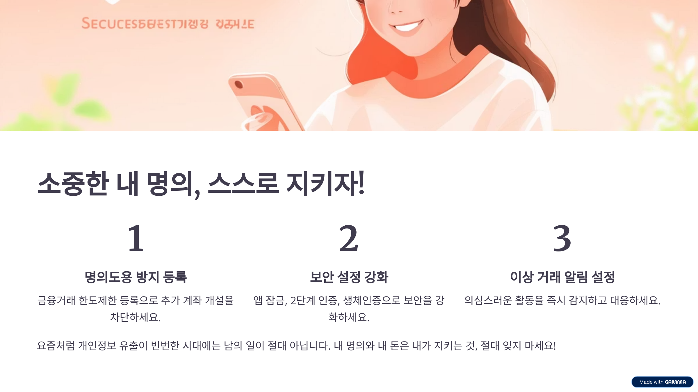 이 3가지만이라도 지금 당장 실천해보세요! 내 명의와 내 돈은 내가 지키는 것, 절대 잊지 마세요. 🔥