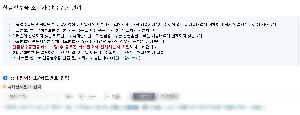 현금 영수증 카드 보다 휴대폰 전화번호 등록
