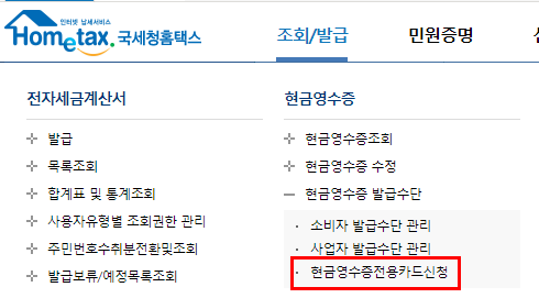 현금 영수증 카드 신청