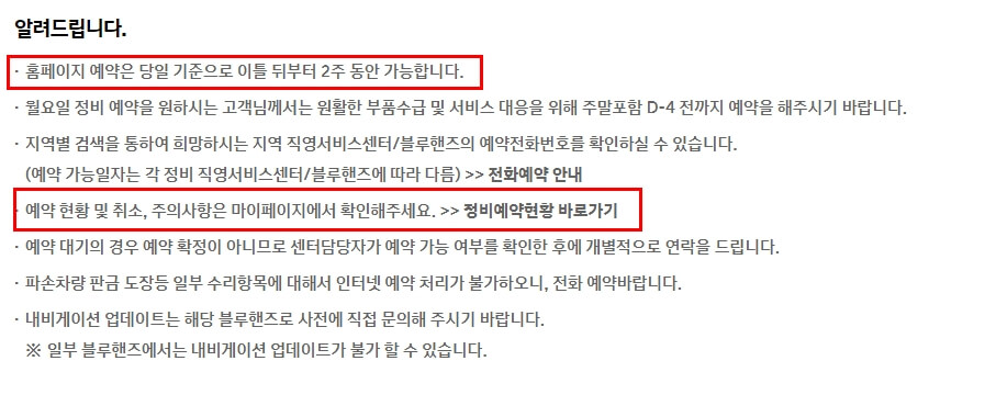 그럼 현대자동차 서비스센터 직영점에 대한 세부적인 안내 내용과 현대자동차 고객에게 부여되는 다양한 서비스에 대해서 소개해주고있습니다. 차량 번호 인식을 통해서 별도에 절차를 축소하였네요.