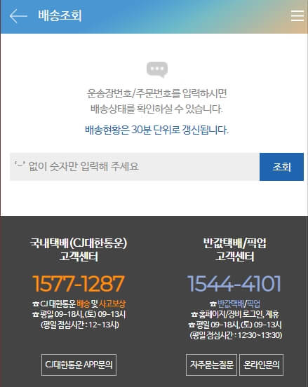 가장 정확한 정보는 역시 공식 홈페이지입니다. 당사에서 운영하는 서비스이기 때문이죠. 해당 사이트에 접속하시면 배송 조회부터 다른 이벤트도 활용이 가능하니 참고해보세요.