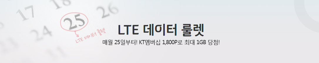 매월 25일 부터! KT 멤버십으로 LTE 데이터 충전 가능!