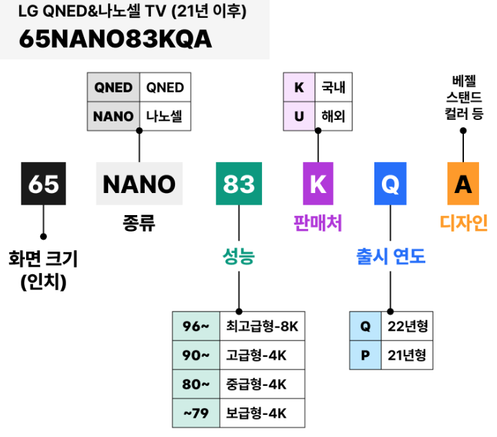 이러한 구조를 통해 LG TV의 모델명을 쉽게 해석하고, 원하는 사양의 TV를 선택하는 데 유용합니다.