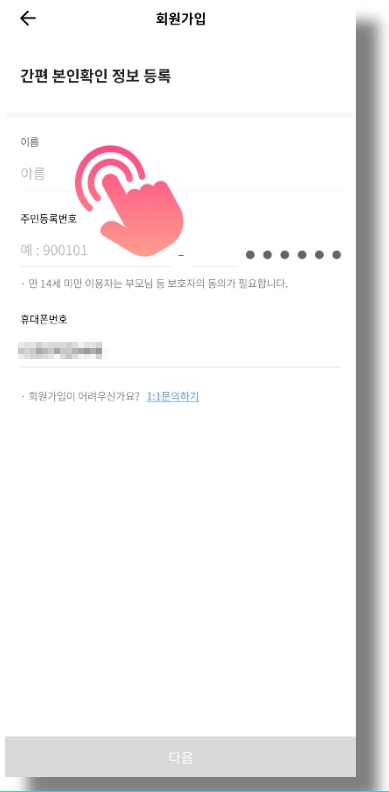 2. 간편 본인확인 정보 등록으로 "회원가입"을 진행해주세요.