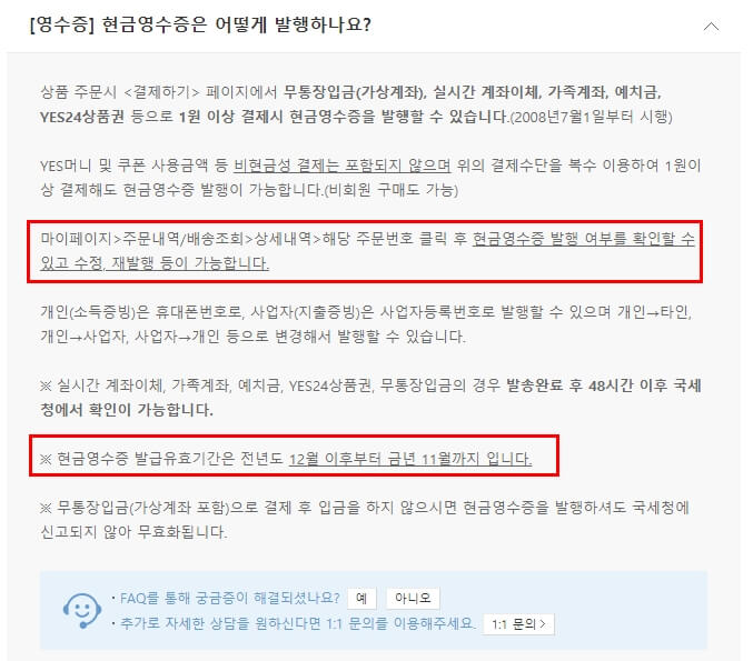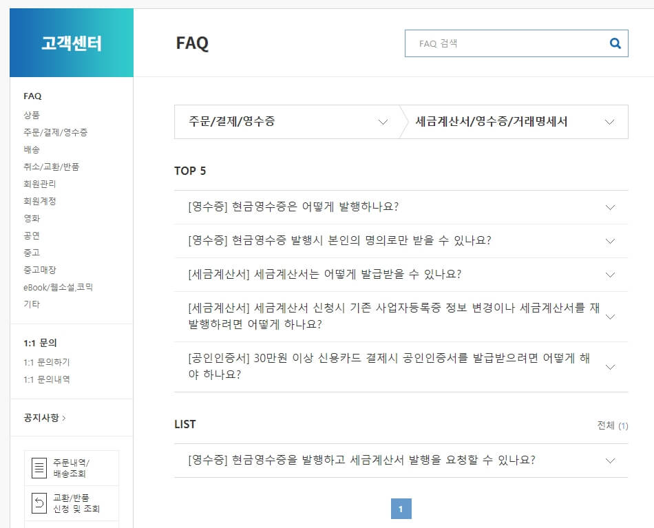 위와 같은 방법도 있지만, FAQ 를 통해서 현금 영수즘, 세금 계산서 발급에 대한 안내도 확인 할 수 있다는 점도 함께 공유드립니다. 대부분 고객센터에 경우는 빈도가 높은 질문에 대한 안내를 주로 제공하고 있습니다.