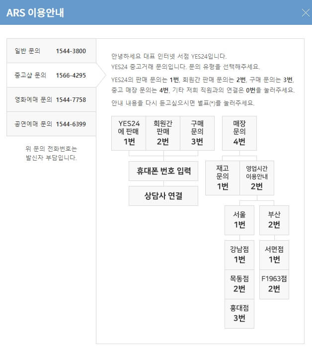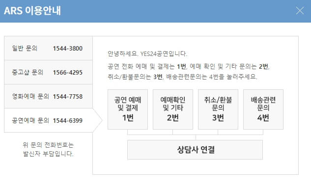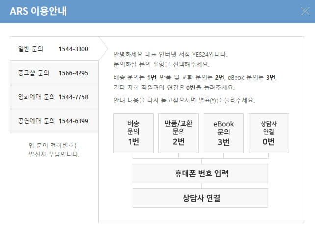 예스 24 고객센터 대표 전화 번호 이용 방법