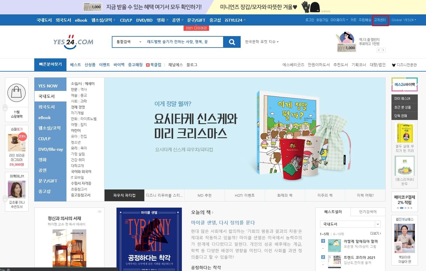 Yes24 (예스24 ) 고객센터 공식 홈페이지