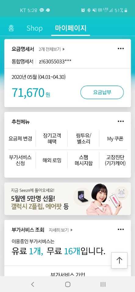 요금명세서 메뉴 에서 세부 정보 확인해보세요.