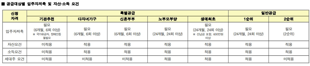 이번 분양은 우선 공급 비율이 총 3가지로 구분됩니다. 그리고 그 3가지는 각각에 자격이 요건이 있습니다.