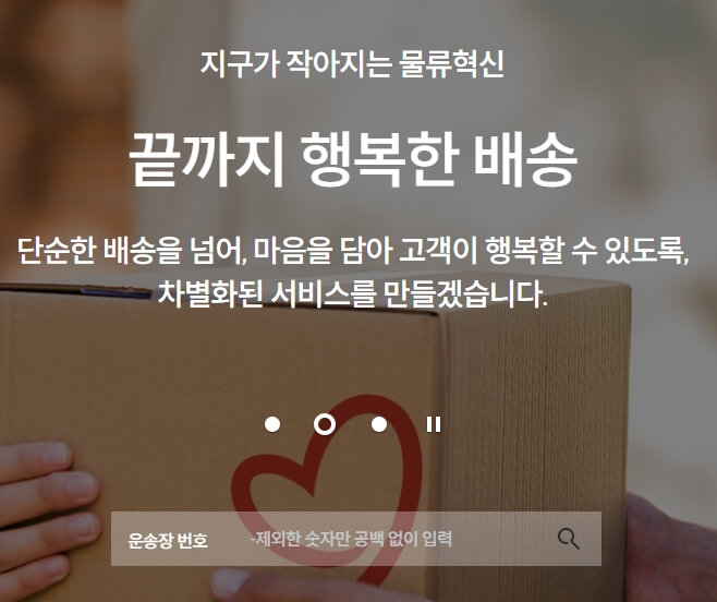 접속하면 가능 먼저 가운데, 운송장 번호 입력 영역이 있습니다. 해당 영역에 운송장 번호(숫자만 입력 가능)를 입력 후 조회 버튼(돋보기 모양)을 클릭해주세요.